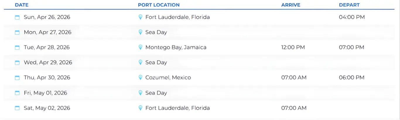 *Itineraries, port locations, and times are subject to change without prior notice.