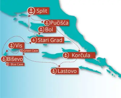 Paradise really does exist. Set sail with us June 20–27, 2026, on the Southern Croatian Naturist Cruise, exploring sun-soaked islands and hidden coves along the Adriatic Sea. We’ll embark and disembark in Split, cruising to Pučišća, Korčula, Lastovo, Ravnik (Green Cave), Vis, Biševo (Blue Cave), Stari Grad, Bol, and Šolta.