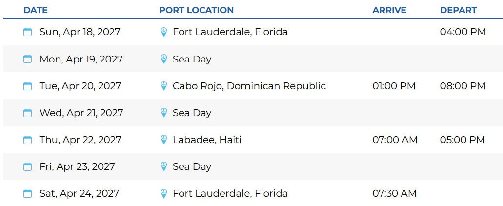 Ft Lauderdale – Cabo Rojo, Dominican Republic  –  Labadee